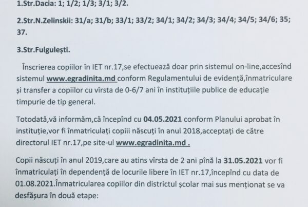 În atenția parintilor!,,Înmatricularea copiilor în IET nr.17”